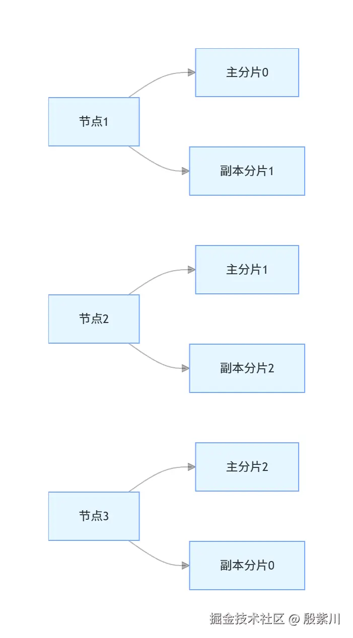 - 副本分片:是主分片的完整拷贝,核心职责有两个:一是数据容灾,当主分片所在的节点宕机时,对应的副本分片会被提升为新的主分片,保证数据不丢失,服务不中断;二是分担查询负载,副本分片可以独立处理查询请求,提升集群的整体查询吞吐。副本分片的数量可以随时动态修改,副本分片不会和对应的主分片分配在同一个节点上。