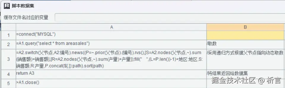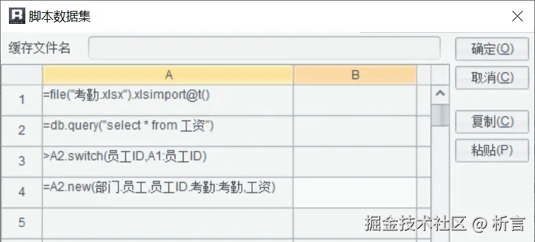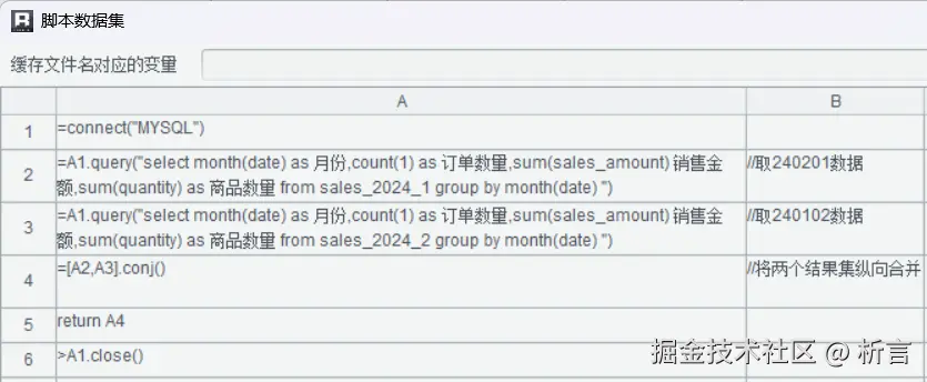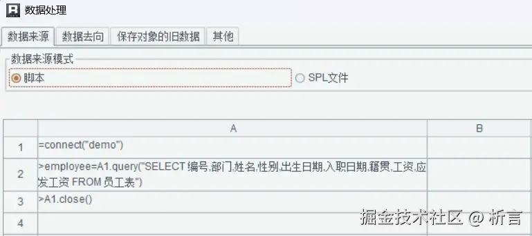 语法更符合开发者的自然思维,使用几个函数就搞定了。再比如要实现两个异构数据源间的关联,同样可以在脚本数据集中实现: