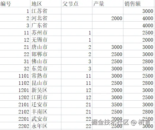 **树数据集:**帆软报表中有种数据集类型是“树数据集”,可以根据父节点等信息自动分析数据结构,生成带层级的数据集: