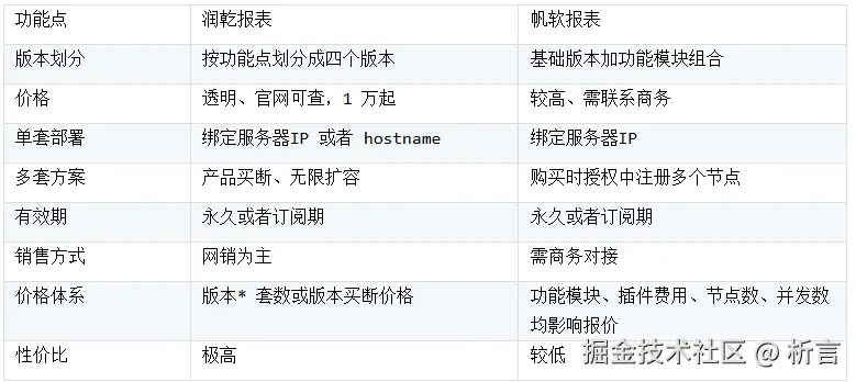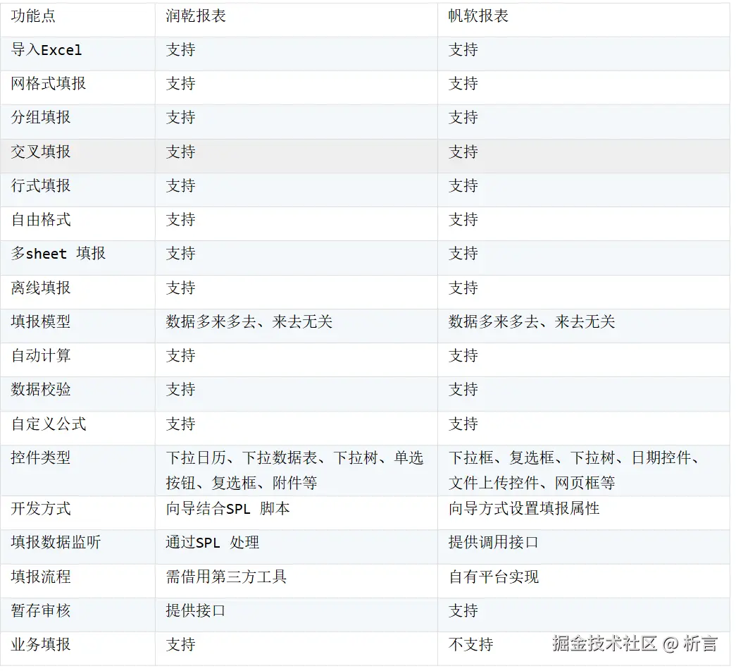 润乾和帆软是仅有两家能流畅处理中国报表复杂报表的产品(其它都是号称),但细节还有不同,这里对很多用户选型时关心的功能点逐一做个对比,为用户产品选型提供参考。