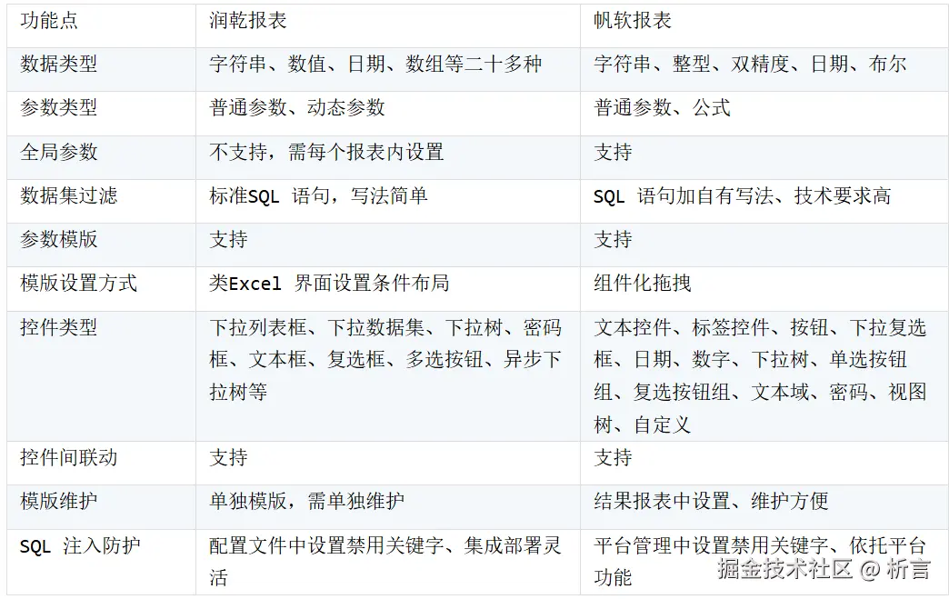 **小结:**两款工具的核心差异在于计算逻辑的放置位置。润乾通过脚本数据集将复杂计算前置到取数阶段,减轻了报表引擎的压力,提升了性能并简化了报表设计。而帆软则严格遵循取数与计算分离的经典模式,复杂计算主要在报表层的单元格中通过函数完成,保持了逻辑的直观性,但对引擎和设计能力要求较高。