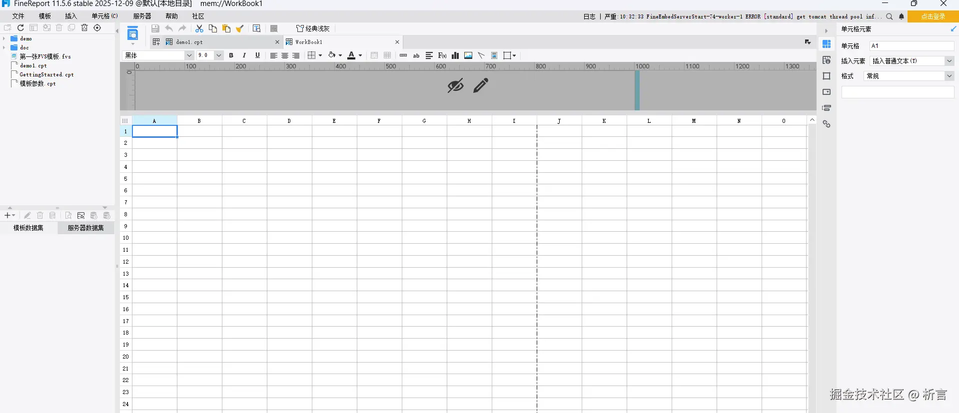 帆软报表新建空白报表,报表模版行数和Excel 中一样,行数不限制,如果设置的报表模版行数较多,就不需要做添加行操作了。右侧区域对不同属性操作做了分类处理,界面布局更简洁。在设计器里可以做用户登录,打通了帆软所有的产品线、文档、官方 demo 等,查看其他资源时很方便。还是通过上述例子,看下实际操作,最终制作模版如下: