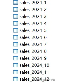 **关联数据集:**数据库中数据量大时,通常会采用分表或分库方式存储数据,如销售数据每个月存放到一张表中: