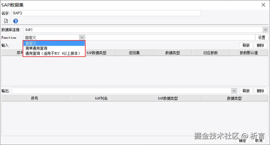 非关系型数据库,大多数也是通过插件方式支持,比如SAP 数据库,要下载支持的 SAP 数据集插件,下载配置完成后,就可以新建 SAP 数据集: