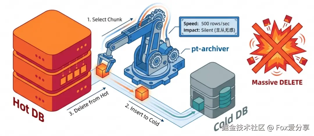 DELETE会产生海量 Binlog,主从延迟能让你想哭。 - pt-archiver 蚕食策略:** 用 Percona 的