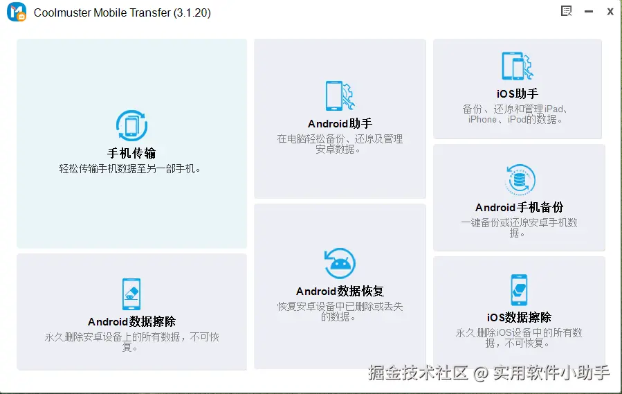 01 在您的计算机上,安装并启动 Coolmuster Mobile Transfer 。