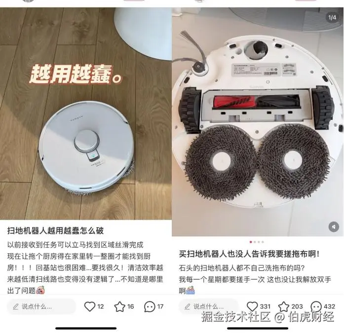 但从2021年开始,消费者的新鲜感褪去,扫地机“好看不好用”的吐槽也日渐增多:有消费者认为扫地机看似方便,但实际上很多角落都打扫不干净;还有绕线、卡住、识别不佳等问题,也让消费者对高达数千元的扫地机逐渐祛魅。