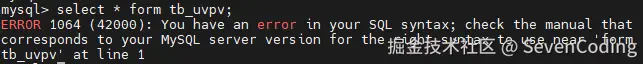 如果输入的 SQL 语句语法不对,就会在解析器这个阶段报错。比如把 from 写成了 form,这时 MySQL 解析器就会给报错.