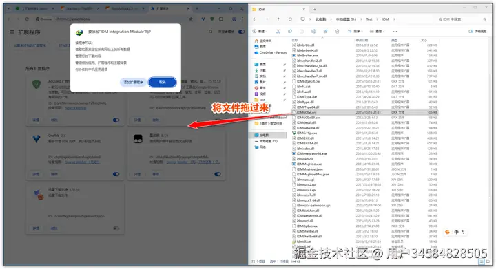 然后打开IDM软件目录,找到扩展名为.crx的这两个文件,「IDMGCExt」是针对Chrome浏览器的,「IDMEdgeExt」是针对Edge浏览器的,根据你使用的浏览器选择。