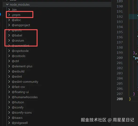 node_modules 里既有 .pnpm 文件夹,又有直接暴露出来的包(如 @babel, @cesium),会感到非常困惑:“不是说 pnpm 不扁平化吗?为什么这里看起来还是扁平的?”
