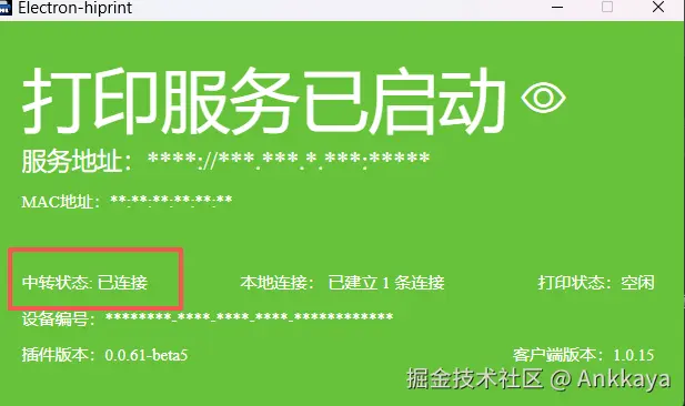 确保本地已经安装打印助手,并且打印助手已和打印服务端建立连接