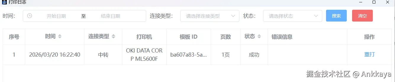 调用成功,打印成功回调显示打印日志,在本地打印助手右键“打印记录”,可以看到打印日志