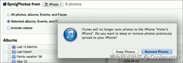 如果你的 iPhone 与 iTunes 同步,就很难从 iPhone 中删除照片。简单的解决方法是停止同步。