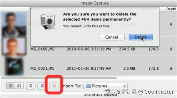 步骤 3:在Mac上打开图像捕捉,选择并删除要从 iPhone 中删除的照片。