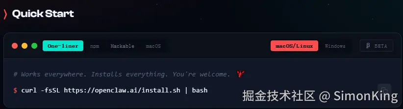 curl -fsSL https://openclaw.ai/install.sh | bash