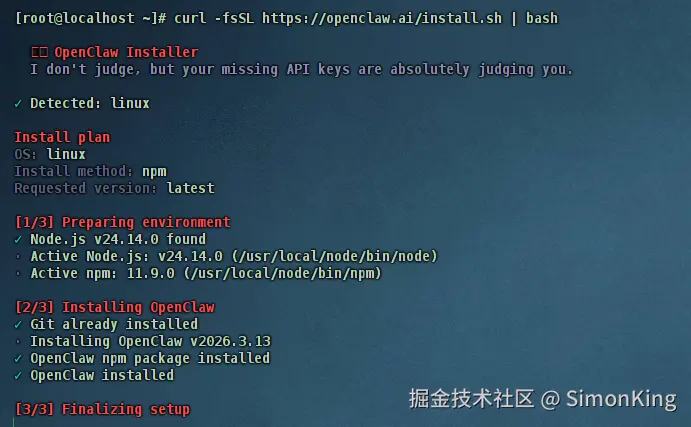 OpenClaw在GitHub上短短4个月就斩获32万+ Stars,其受欢迎程度可见一斑。网上windows版本安装的教程偏多,本节将通过Linux安装一下小龙虾的蓄水池。
