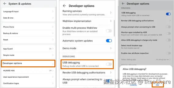 - 若弹出提示,在手机上开启 USB 调试,并授权电脑访问设备。
