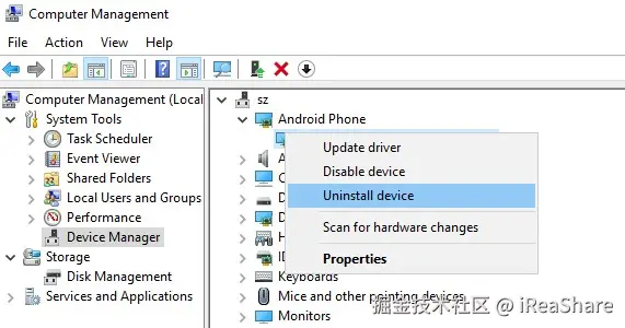 - 将华为设备连接电脑,打开设备管理器(右键此电脑 > 管理 > 设备管理器),在列表中查找 ADB 或 HDB 条目。