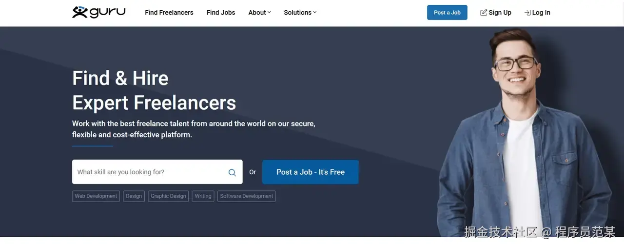 Freelancer是全球最早的综合性开发人员兼职平台之一,拥有超过5000万注册用户,项目覆盖软件开发、设计、写作、翻译等数百个领域。