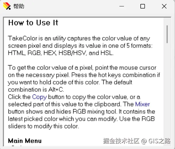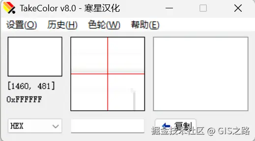 TakeColor取色器工具非常简洁,而且大小只有221KB,比之前介绍的小工具都要小很多。