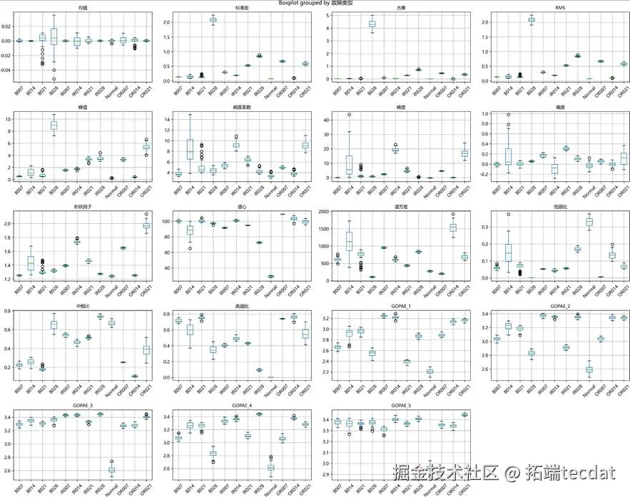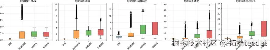 关键时域特征分布箱线图: