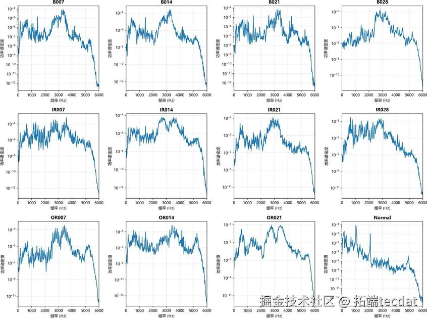 图:源域各故障类型功率谱密度分析