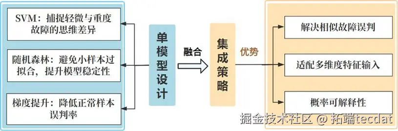 - 梯度提升 (Gradient Boosting) :迭代优化,聚焦难分样本,提升对相似故障的区分能力。
