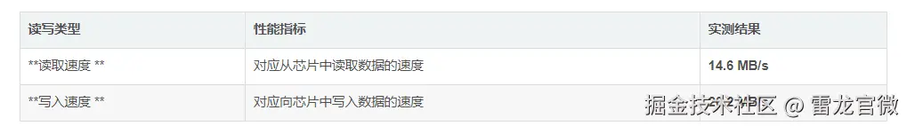 满足数据回传需求: 芯片的读取速度为 14.6 MB/s。当采集器需要通过 LoRa/NB-IoT/4G 等通信模块将存储的数据回传至云端时,这个速度能够提供稳定的数据流,确保数据传输的效率。