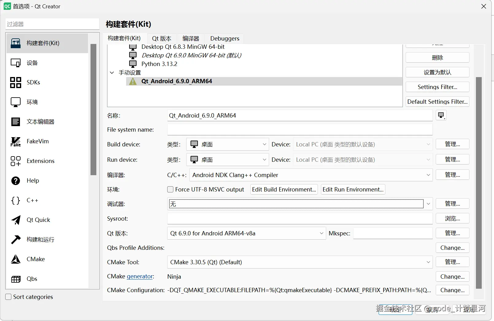 这是Qt里的设置,先要在构建套件里设置安卓开发环境。