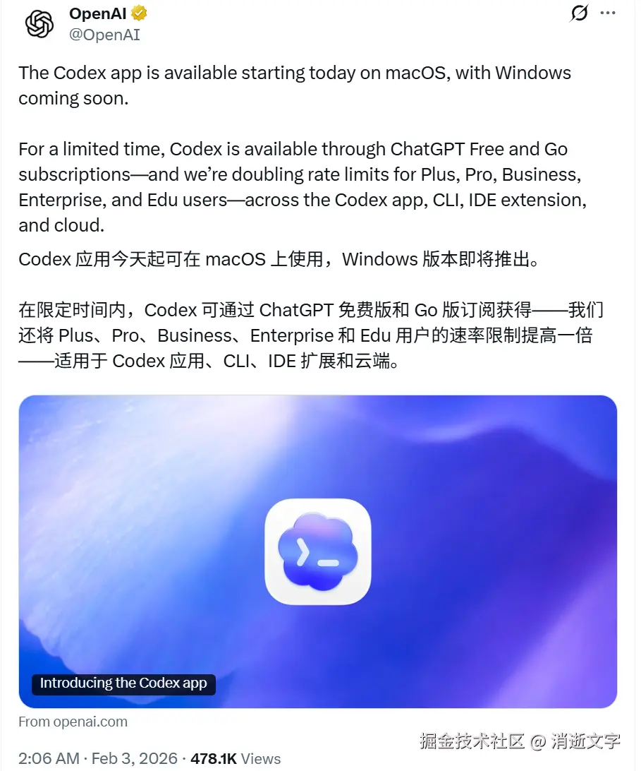 这一步不只是"让 Codex 更好用",是让 Codex 搭上 ChatGPT 的流量。