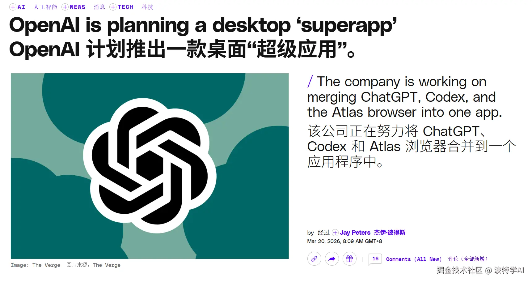 OpenAI 要把 ChatGPT、Codex、Atlas 浏览器三个产品合成一个桌面 APP。