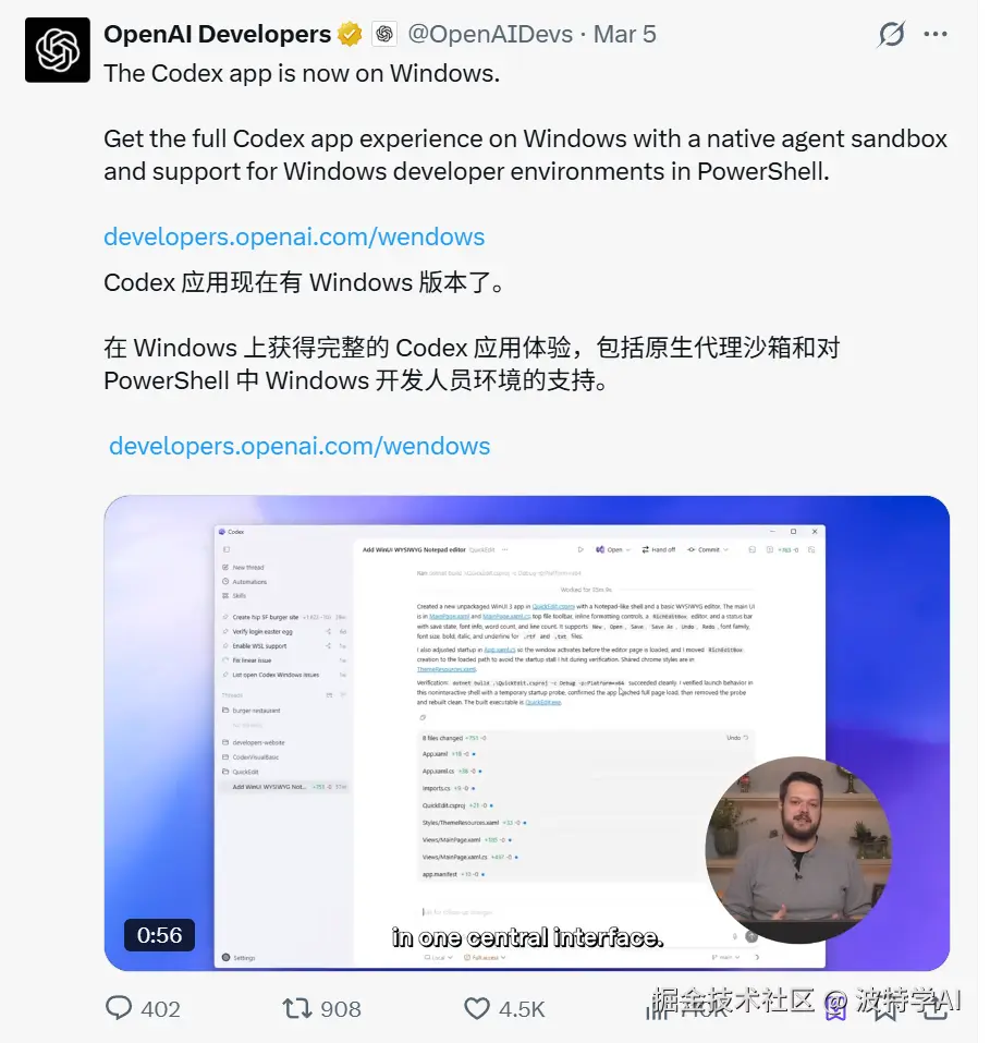 把 Codex 塞进 ChatGPT 的超级 APP 里,等于把 4 亿用户的入口直接对接上了代码能力。用户不用专门找 Codex,它就在那儿。