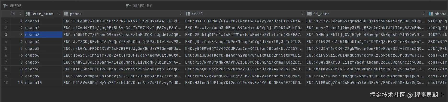 再插入几条数据,手机号后4位、身份证后6位、邮箱前缀其中有相同的