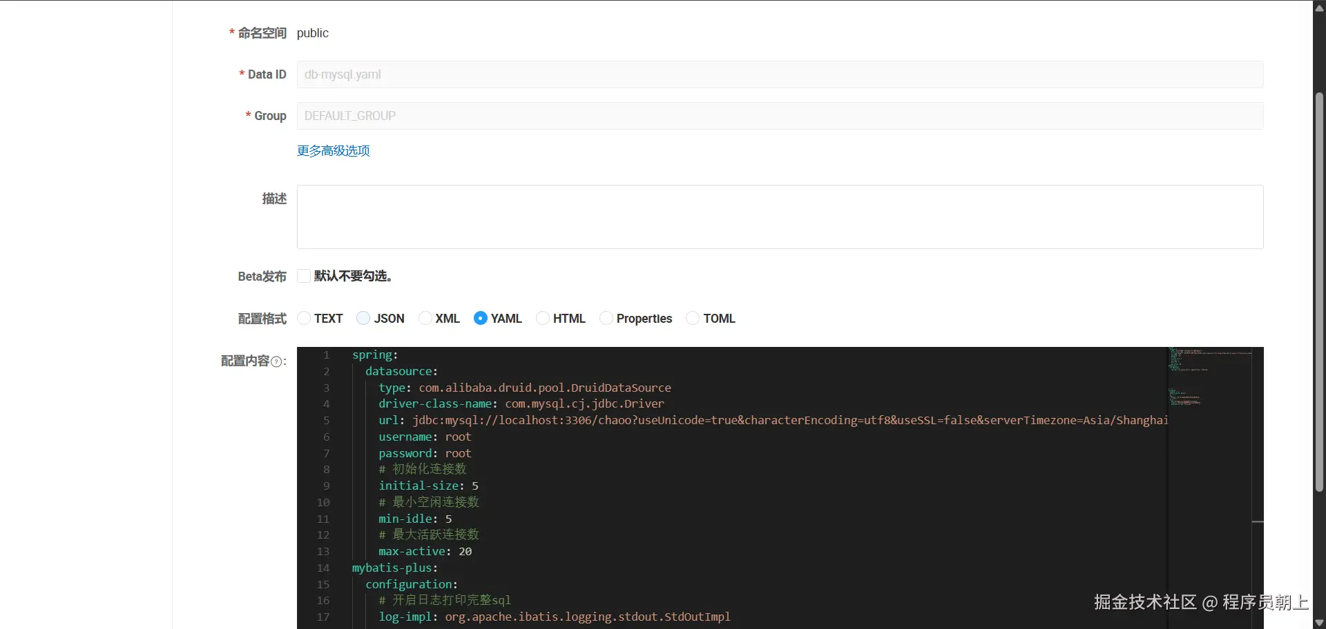 在nacos上创建数据库相关的配置文件 db-mysql.yaml作为各模块的公共数据库配置
