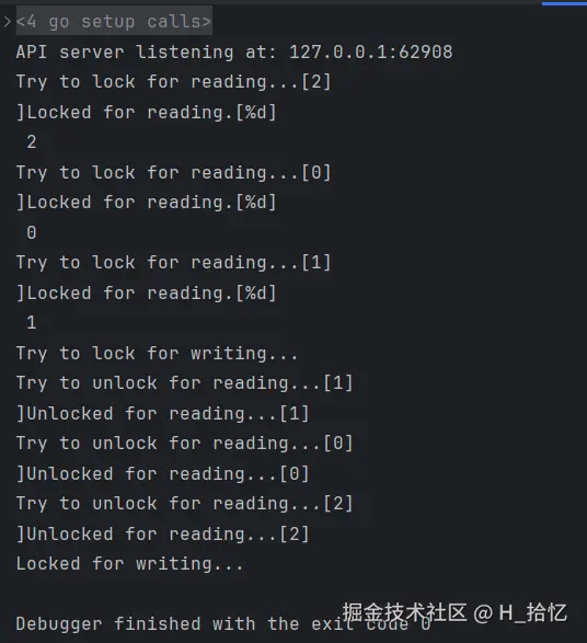 从上面的内容可以看出Locked for writing 总是出现在最后一行.可以体会出读锁是可以重复获取的.而读写就是互斥的.