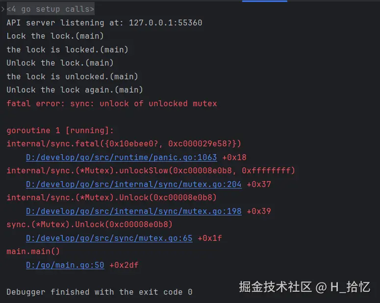 fmt.Println("Unlock the lock again.(main)")