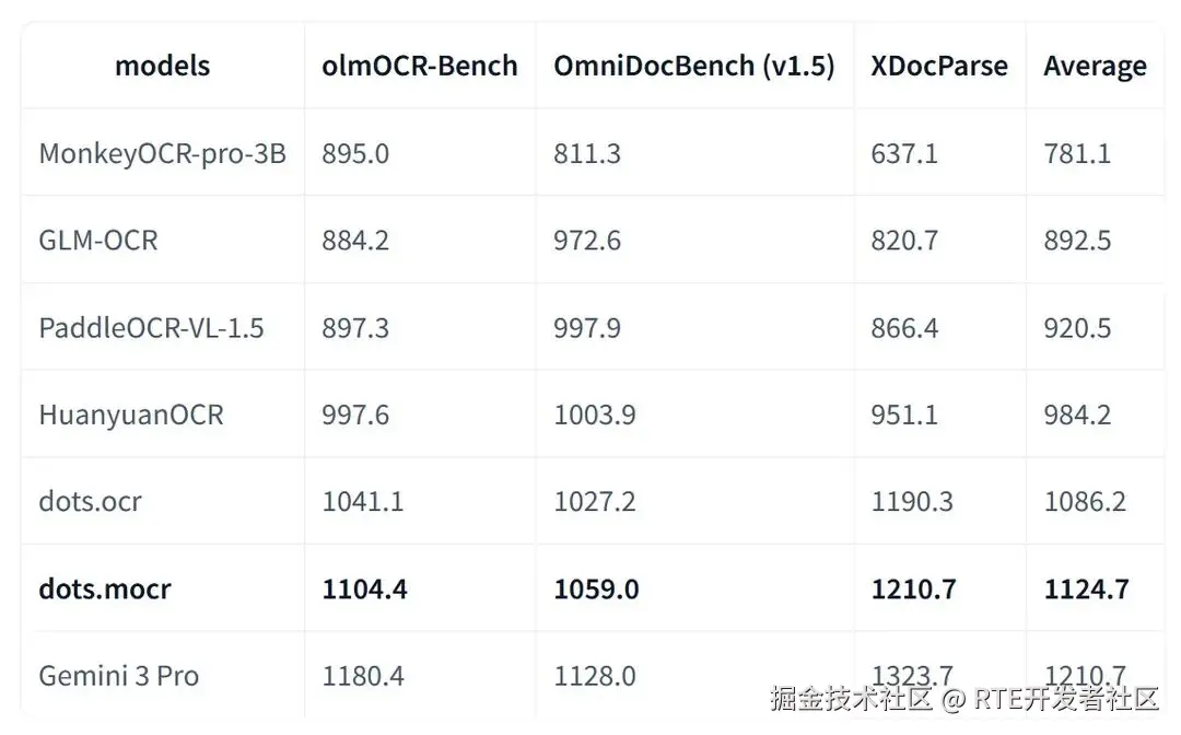 评测显示,该模型在 olmOCR-Bench 等基准表现优异,特定细分项得分高于 Gemini 3 Pro。