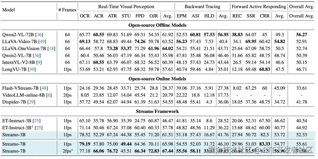 通过这种方式,Streamo 将**「是否响应」 **与 「生成什么内容」 统一到同一个 next-token prediction 过程中。也就是说,模型在预测下一个 token 时,不再只是生成文本内容,同时也在完成响应时机的判断。这样一来,决策和生成共享同一语义空间,模型能够在连续变化的视频内容中联合建模时序线索、任务目标与语言输出,从而更自然地学习 「何时该立即回应、何时应继续等待」。