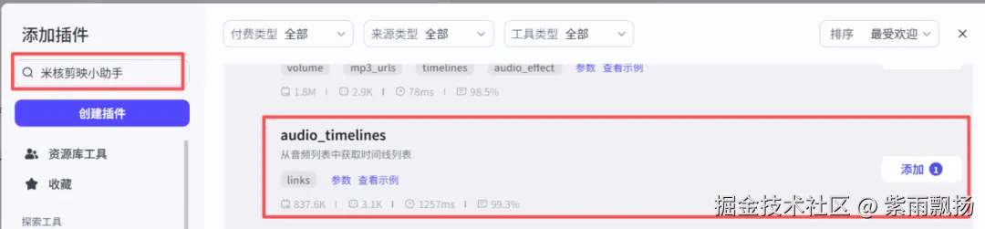 该节点的作用是生成开场音效时间线,需要用到的插件是第三方的 【米核剪映小助手】 的 【audio_timelines】