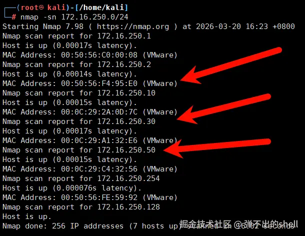 nmap -sn 172.16.250.0/24