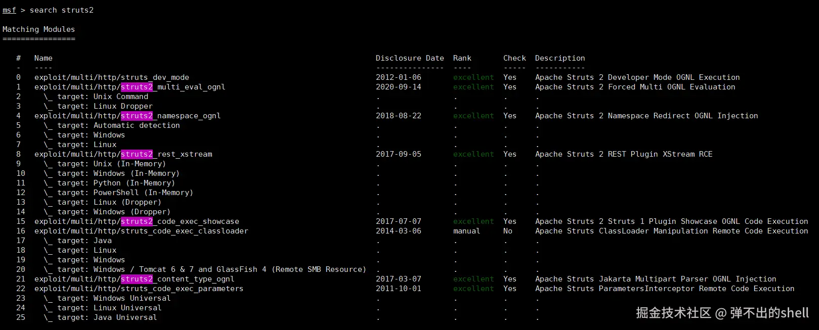 打开 MSF,搜 Struts2: