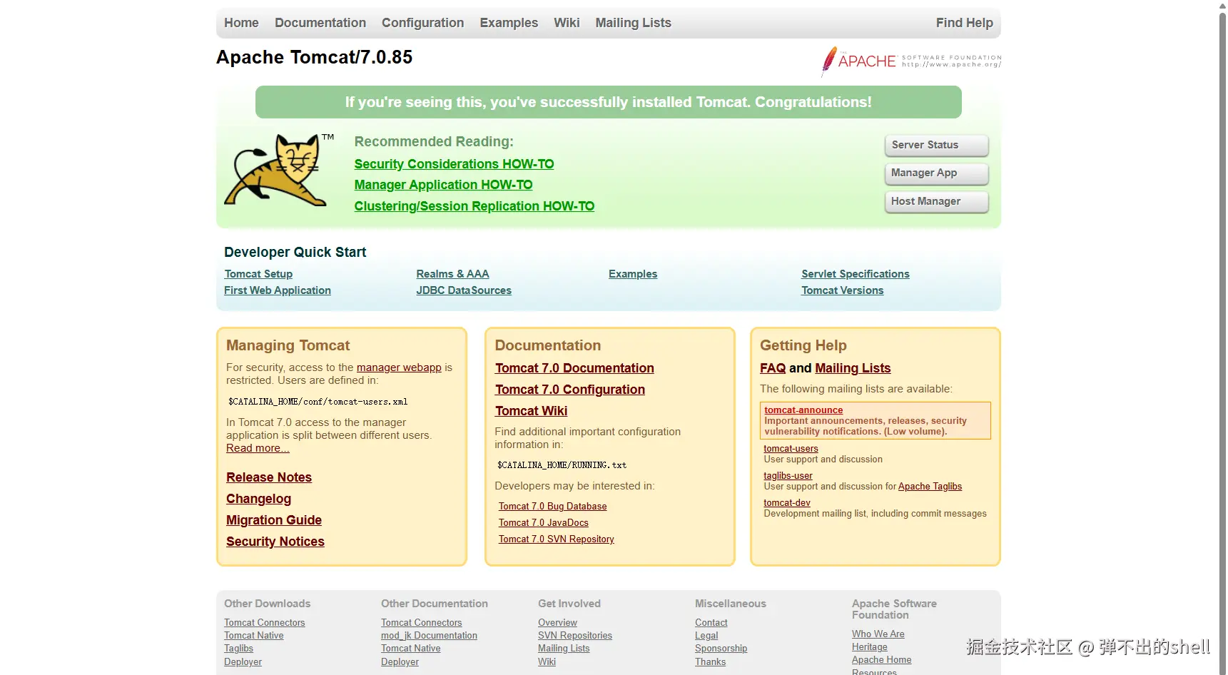 标准的 Tomcat 页面: