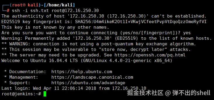 就是之前从 .10 拿到的那个 SSH 私钥,对应 .30 的 root 登录。