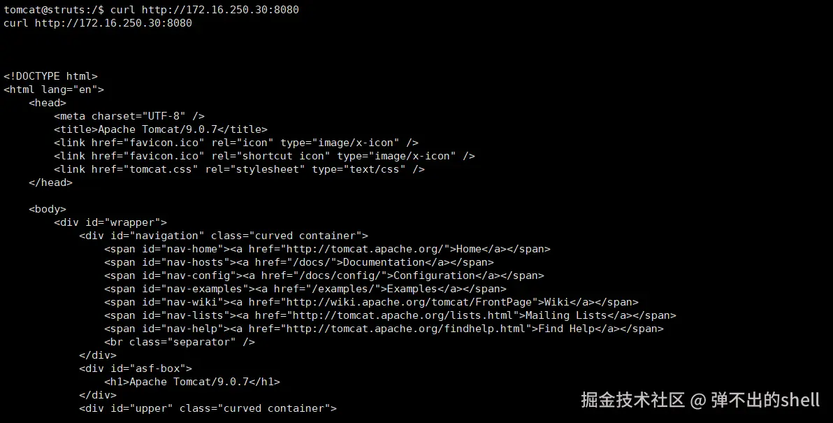 果然有 8080 端口在监听,但之前 nmap 外部扫描没扫到,说明这个服务只对内网开放。