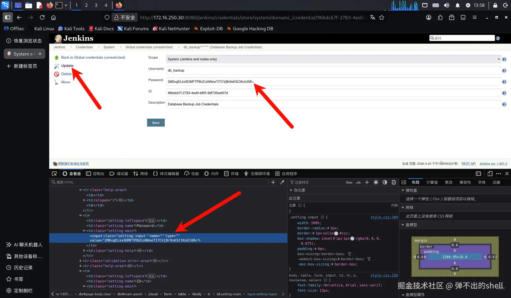 hudson.util.Secret对凭据加密,密钥存储在 Jenkins 主目录的secret.key文件中,通过 Groovy 脚本可以直接在 Jenkins 内解密。这是 Jenkins 凭据审计中的常见利用点。