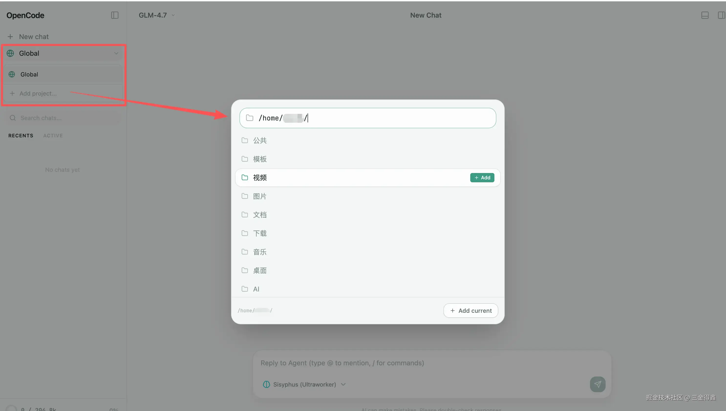 然后,我们可以通过点击左侧菜单中的「Global - Add project」来添加工作目录: