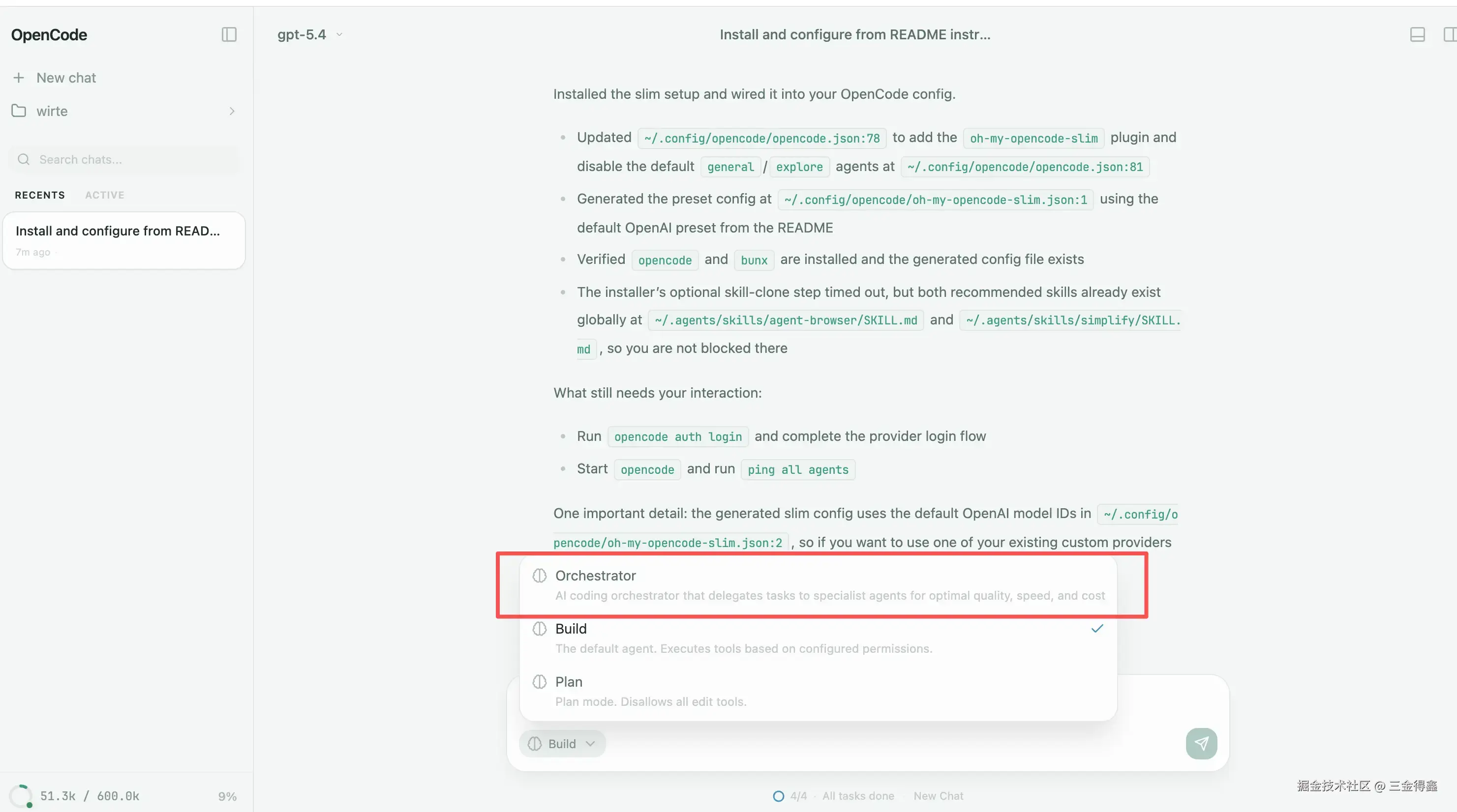这里有个问题,我安装 omo 之后,容易卡住。可能是因为 omo 太重了,先从插件中去掉了。